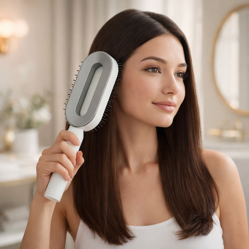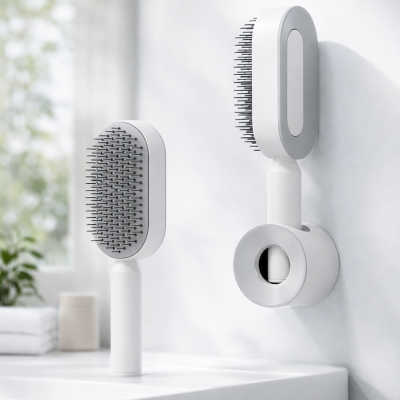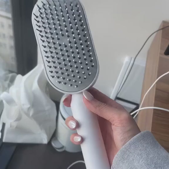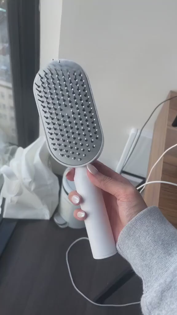 Druk één keer op de knop en de haren worden automatisch uit de borstel geschoven. Even weggooien en klaar — snel, schoon en zonder gedoe.